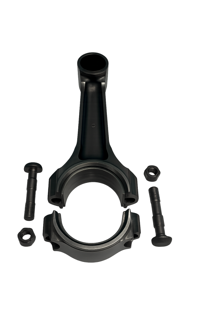 - Las bielas, también de acero forjado o de aleaciones de titanio, unen el pistón al cigüeñal. Soportan enormes cargas alternas, tanto de compresión como de tracción, y deben ser extremadamente resistentes a la fatiga.