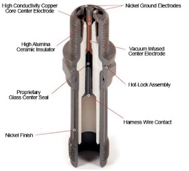 Rodea el electrodo central y lo separa eléctricamente del cuerpo metálico. Está hecho de un material cerámico de alta resistencia dieléctrica (porcelana de alúmina) capaz de soportar temperaturas superiores a 1.000 °C. Además de aislar eléctricamente, ayuda a disipar el calor generado en la punta de encendido. En motores de aviación, este aislador suele estar reforzado para resistir vibraciones intensas y ciclos térmicos severos.