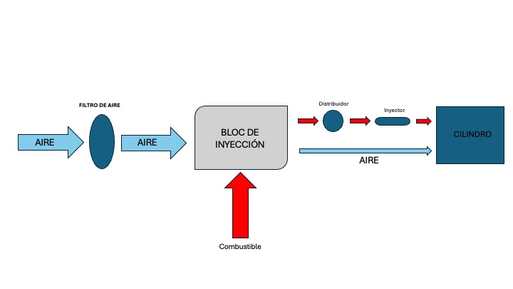 - Proceso termodinámico: Se produce una aspiración isobárica (a presión constante) de la mezcla carburada desde el colector de admisión hacia el interior del cilindro.